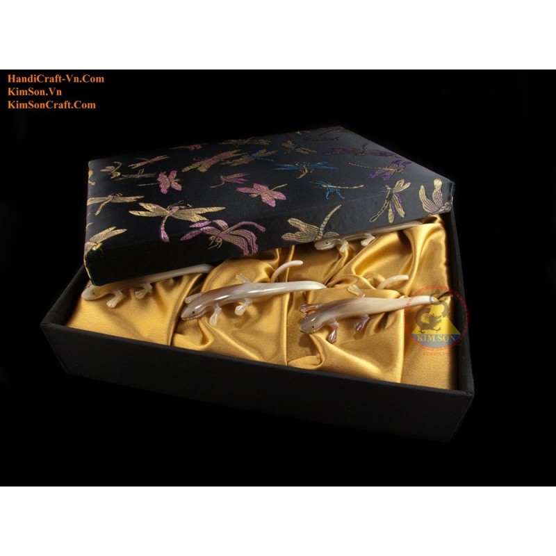 Combo-Serviette: 6 Eidechse Serviette echten Marmor Kuh Horn mit Brocade-box