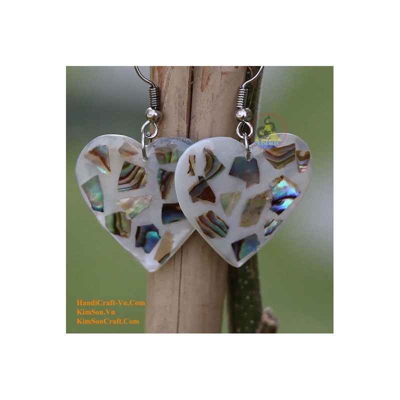 有機緑のアワビ - ハート - イヤリング