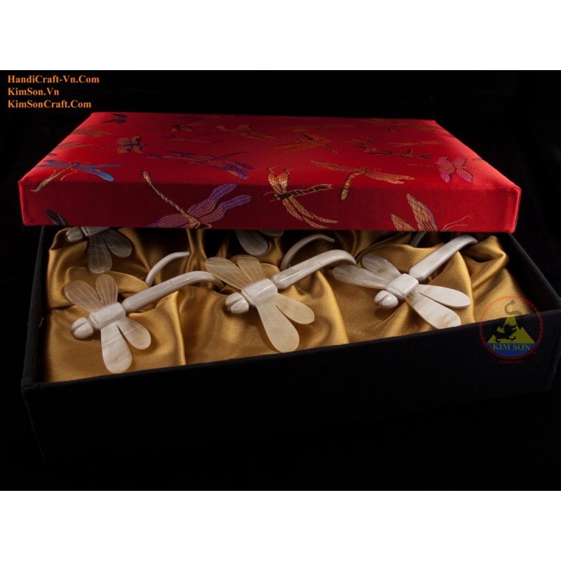 Комбо Салфетка: 6 Стрекоза салфетки мрамор коровий рог с Brocade поле