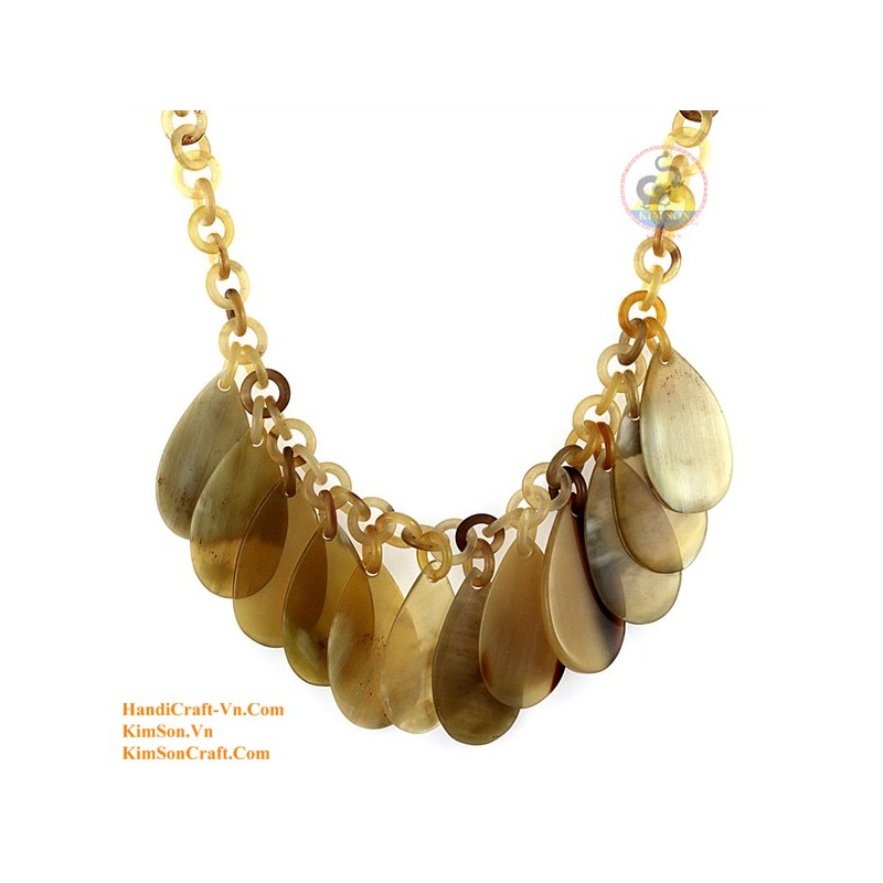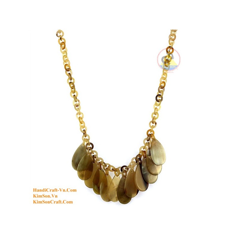 A chain necklace handmade from buffalo horn. Eco-friendly. One of a kind. High gloss finish. Lightweight. Great gift idea!